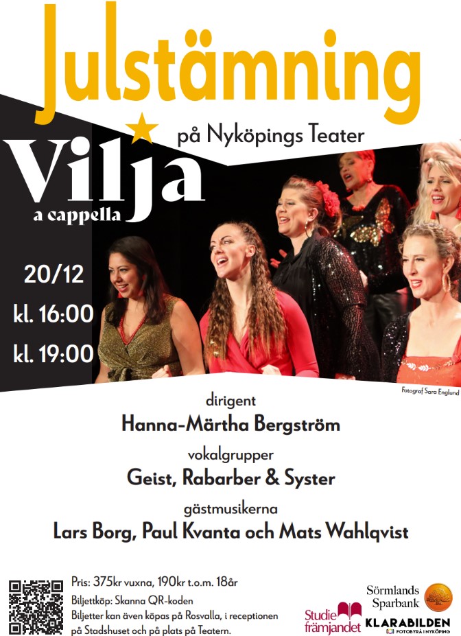 Den 20 december är det äntligen dags! Då fyller vi Nyköpings Teater med klanger, närvaro och jul-magi när Vilja A Cappella bjuder in till årets stämningsfullaste konsert: Julstämning – en musikalisk paus mitt i stressen i december.