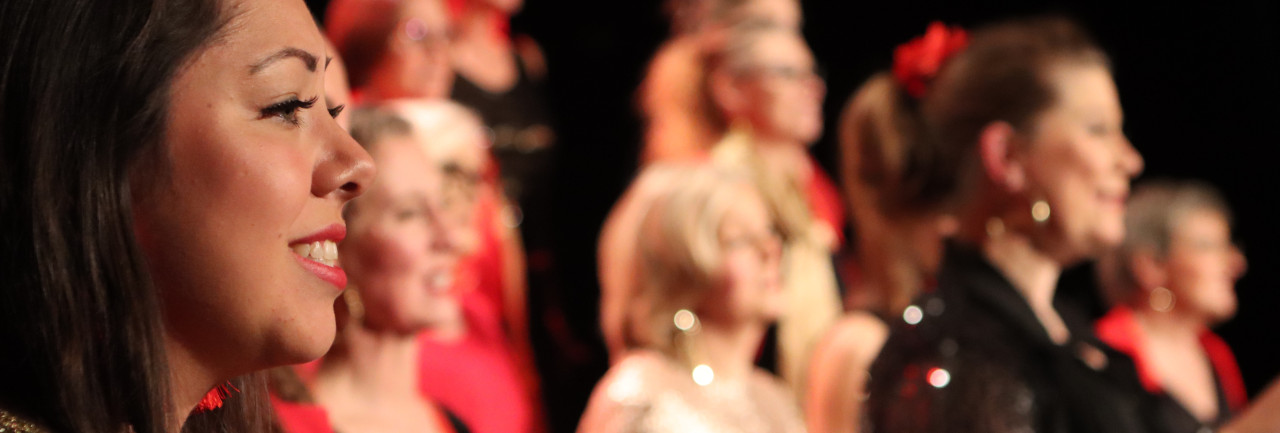 | "Denna sceniska kör erbjuder dig möjligheter att utvecklas musikaliskt och personligt till nya höjder! Du möts av glädje och värme och får vänner för livet." |